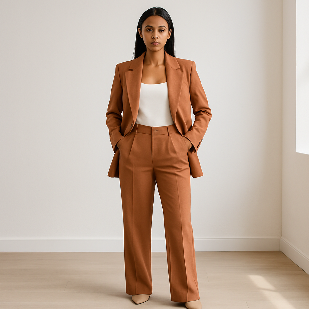 - Getailleerde blazer en broek met elastische tailleband zorgen voor een flatterende fit
